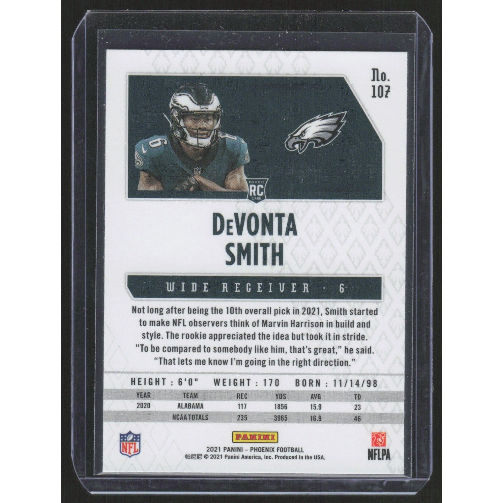 This is a nice example of a 2021 Panini Phoenix #107 DeVonta Smith Fire Burst