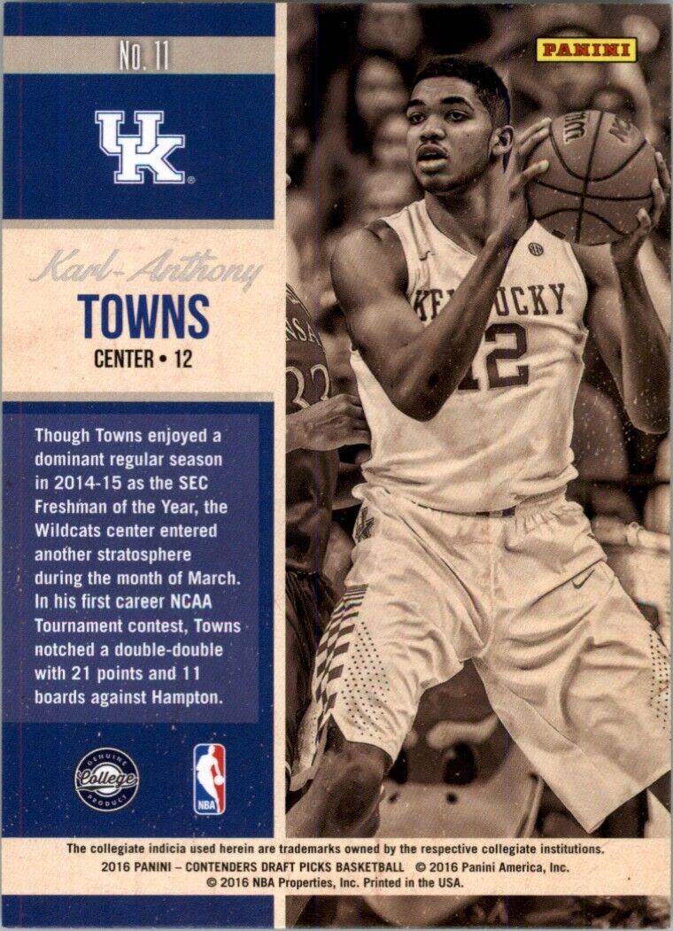 | 2016-17 Panini Contenders Draft Picks Old School Colors 11 Karl-Anthony Towns |