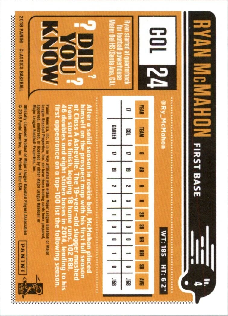 | 2018 Panini Chronicles Classics 4 Ryan McMahon |