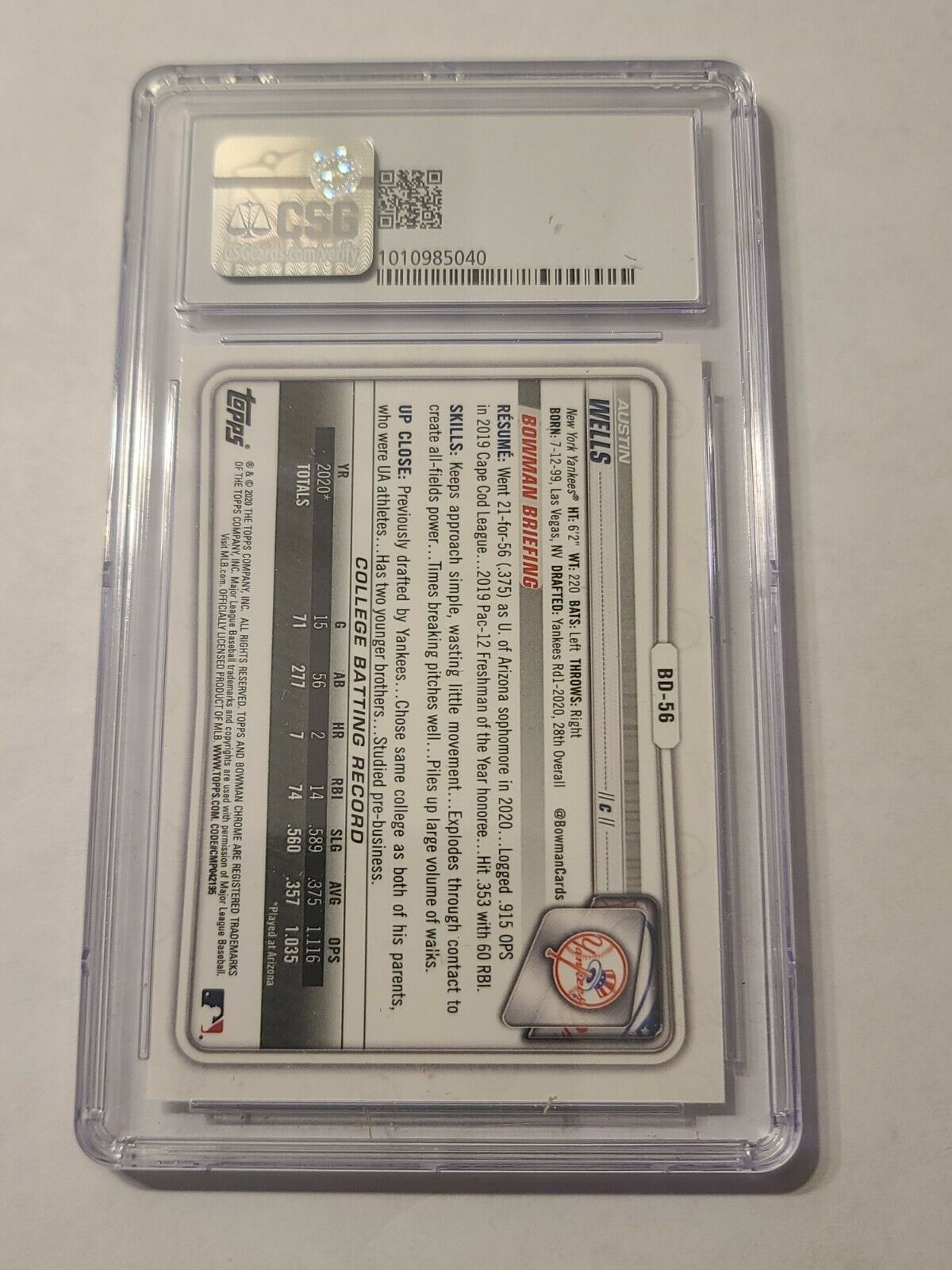 2020 Bowman Chrome Austin Wells Rc #BD-56 CSG 9.