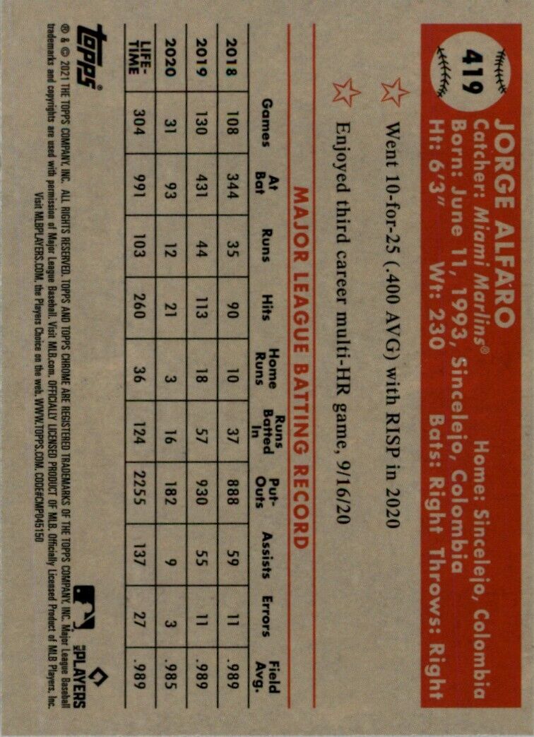2021 Topps Chrome Platinum Anniversary Jorge Alfaro Miami Marlins #419